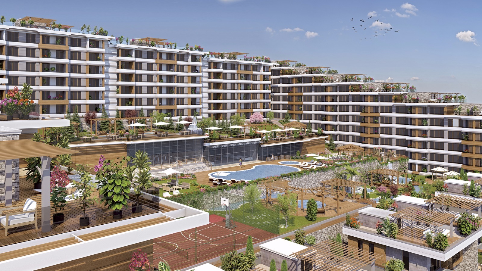 VIP Kurtköy projemizde 78 adet 3+1, 168 adet 2+1 ve 12 adet villa bulunmaktadır. 1500 M² kapalı sosyal tesis 10000 M² yeşil alan bulunmaktadır.